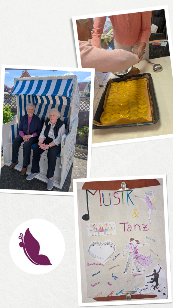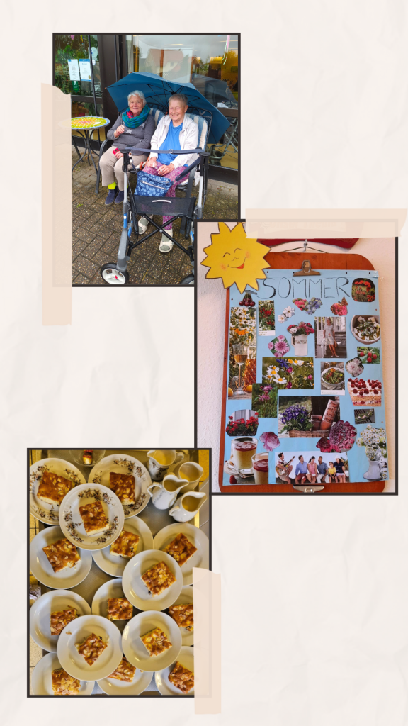 Die Bewegungsangebote an den heißen Tagen wurden durch Wellnessrunden mit Massage und kalten Tüchern ersetzt. Dazu haben wir gemeinsam mit den Gästen am Montag und Mittwoch Kuchen gebacken.