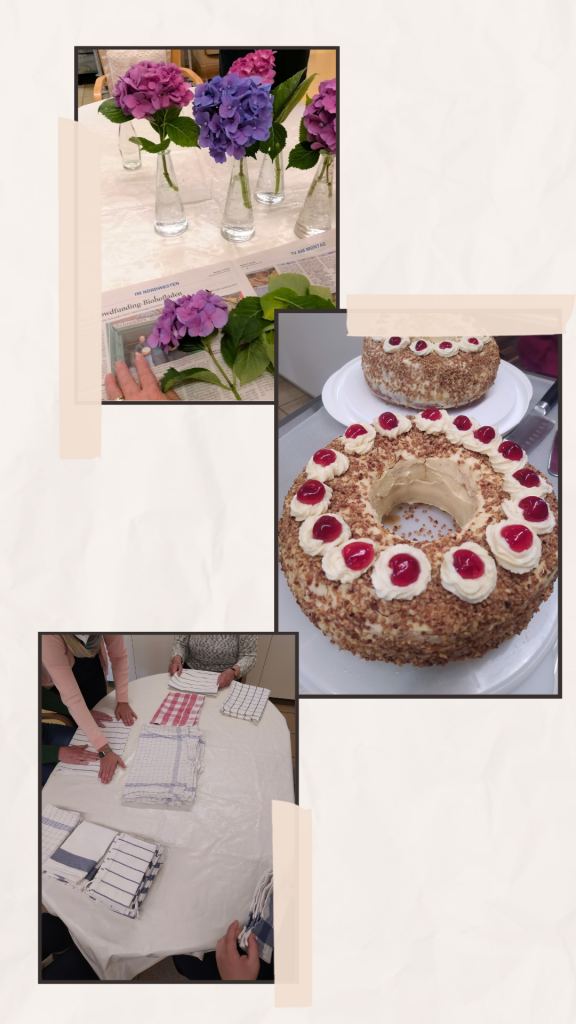 Im hauswirtschaftlichen Bereich wurde Kuchen gebacken und täglich fleißig Geschirrtücher auf- und abgehängt, sowie gefaltet.