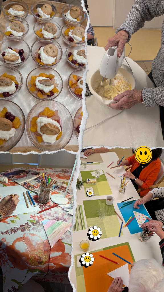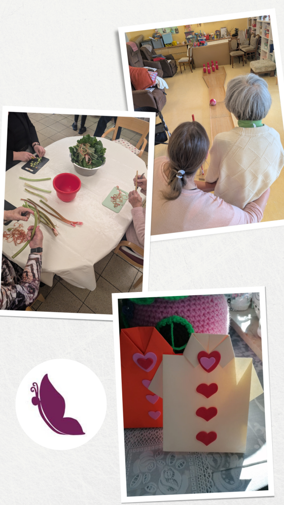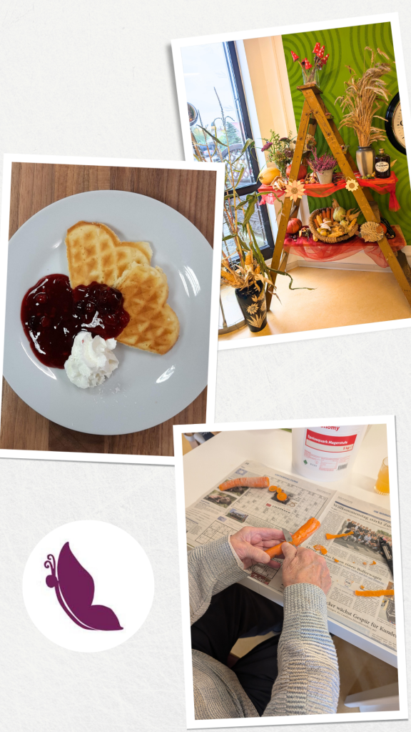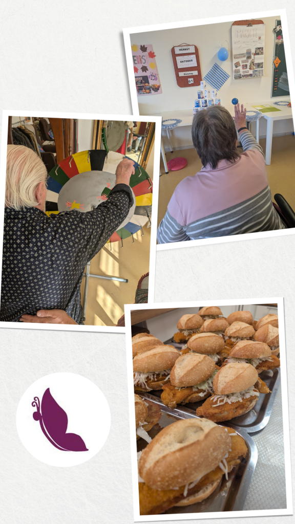 Im hauswirtschaftlichen Bereich wurden Kartoffeln geschält und gerieben, Geschirrhandtücher gepflegt sowie zwei Kuchen gebacken. Diese Tätigkeiten förderten die Selbstständigkeit und das Gemeinschaftsgefühl.