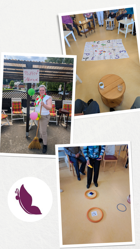 Im kognitiven Angebot wurden Wörterketten zum Thema Sommerfest gesammelt, Quizrunden veranstaltet, Sprichwörter zu Ende geführt und das Spiel „Galgenmännchen“ gespielt.